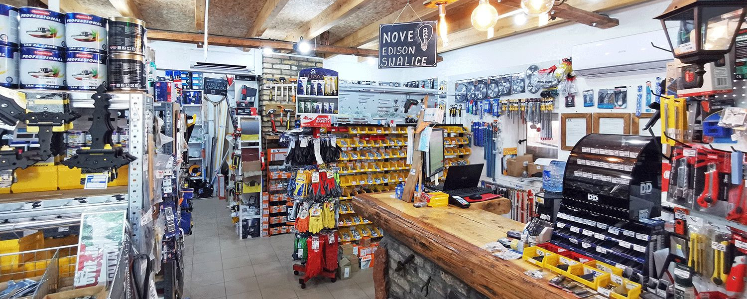 - Elektromaterijal – kablovi PPL i PPY, sijalice, utičnice, produžni kablovi, LED program…