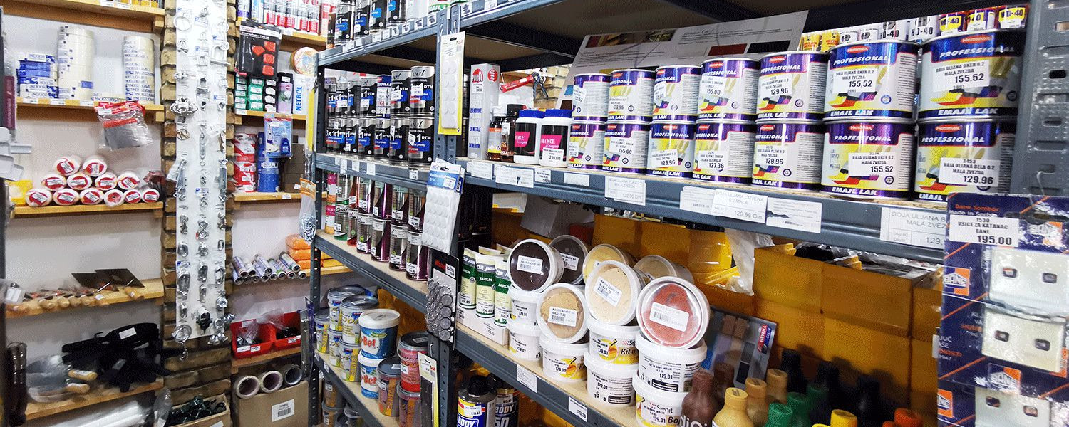 - Farbe, boje i lakovi – akrilne, uljne, nitro, poludisperzije, valjci i četke, lepkovi, pur pene…